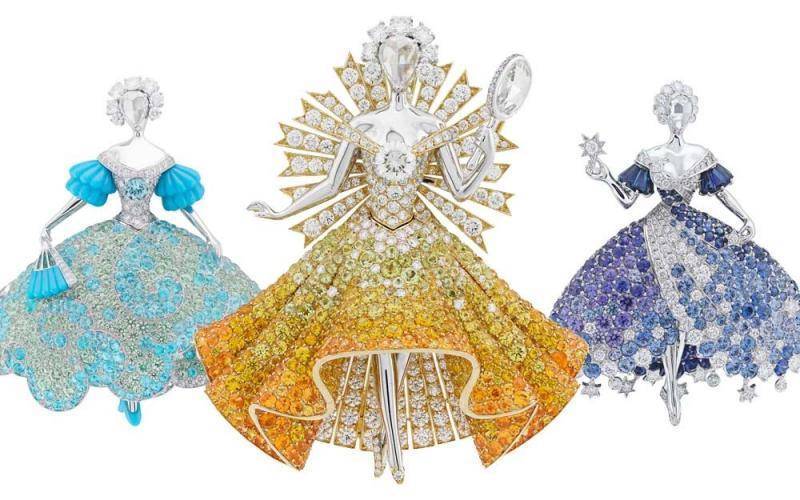 当梵克雅宝(Van Cleef & Arpels)以法国作家夏尔·佩罗的经典童话《驴皮公主》为灵感,创作出一系列令人叹为观止的珠宝作品时,我们仿佛看到了一个勇敢与智慧并存的故事,在璀璨钻石的映衬下,重新焕发生机。公主的面庞,化作一颗倒置镶嵌的玫瑰式切割天然钻石,驴皮外套则由无数明亮的天然钻石铺陈,每一处细节都透露着高贵与优雅。而那三枚分别代表着天空、月亮和太阳色彩的人物造型胸针,更是将我们对童话的无限想象,凝聚于方寸之间。